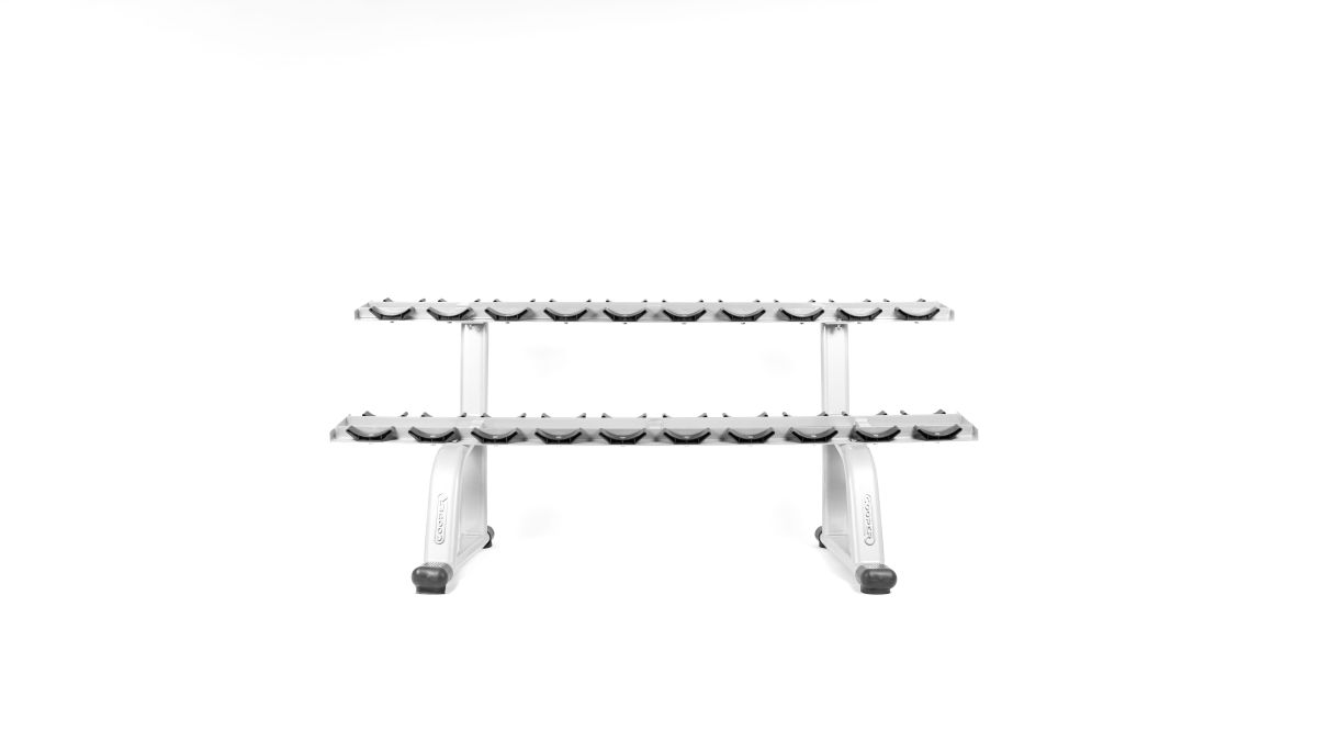 Das Cooper 2-stufige Kurzhantelregal – Green Line Serie – wurde für eine organisierte und leicht zugängliche Aufbewahrung in professionellen Trainingsumgebungen entwickelt. Die zweistufige Konstruktion optimiert die verfügbare Fläche und erleichtert die Handhabung des Equipments.